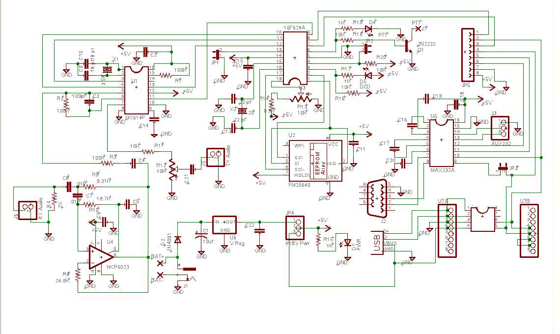 FET TechnologiesTNC-XThe TNC-X is a basic KISS mode TNC that is designed by John Hansen, W2FS. It is available from Coastal ChipWorks either fully assembled and tested, or in kit form. It is based on a 16F628 PIC and the MX614P modem chip. It is also available with a built-in USB interface so it can be used on computers without a legacy serial port. These units make great interfaces for APRS I-Gates, digipeaters, or other applications where a small, simple interface is needed. They are also great when paired with a dedicated radio in a "grab-n-go" emergency communications kit. There is no software to configure in the unit, just plug it all together, and you're on the air! This product is in continual development. Information presented here includes modifications for interfacing to various radios, as well as software and configuration notes for the various USB interface chips available. There is a Yahoo Group established to discuss this device. ConnectionsPlease refer to the schematic and the hookup diagram. Important connections and jumper settings on the PC board are: J Power Input (7-15VDC) J2 DB9(f) Serial Connector 2 RXD (transmit TO computer) 3 TXD (receive FROM computer) 5 Ground J3 AUX232 Auxilliary Data Connection (GPS) RS-232 Levels 1 Ground 2 TXD (transmit TO external device) 3 RXD (receive FROM external device) J5 TX Audio to Radio J6 RX Audio from Radio J7 PTT Output (active low, open collector) JP1 JP2 Port Speed (Computer - TNC) ON ON 1200 baud ON OFF 4800 baud OFF ON 9600 baud OFF OFF 19200 baud JP3 JP4 USB-Serial/Power* OFF 2-3 USB Enabled, powered by USB, Serial Port Disabled ON 1-2 Serial Port Enabled, external power, USB Disabled *JP3 determines whether data received from the computer is passed from the serial port to the TNC. It does not break the connection for data received from the computer through the USB interface (if installed). Use either the serial port or the USB connection, not both. Power does not have to be supplied by the USB connection. If desired, JP4 can be used in the "external" position and power supplied from the DC jack. JP4 1-2 is closest to C22, JP4 2-3 is closest to the USB chip. Power ModificationsThe unit is normally supplied with a 78L05 voltage regulator. Under normal circumstances, this is adequate for general use (wall-wart, battery). The 78L05 can be replaced with a heavier duty 7805 which will better handle being hooked up to a higher voltage supply (more mass to dissipate heat). Watch the pinout, as the 78L05 and the 7805 are different. USB Rev 4.0 (FTDI)Revision 4.0 of the USB interface uses an FTDI chip. The drivers used are the Virtual Com Port (VCP) drivers. Current drivers are available from here. An archived copy of the drivers from February 2007 are available here: Windows XP 64-bit 2.00.00 Windows XP 2.00.00 Windows 98 1.09.06 Linux support should be built into present kernels Copies of the Windows XP and the Windows 98 driver installation guides are also archived here. USB Rev 3.0 (LINX)Revision 3.0 of the USB interface uses a LINX chip. The drivers used are the Virtual Com Port (VCP) drivers. This chip is recognized by the part number SDM-USB-QS1-S printed right on the chip. Current drivers are available from here. NOTE: The chips used by the TNC-X have their own product code (EBE0) burned into them. If you use the drivers from the LINX webpage, you will need to modify the .inf files to include this PID, or the drivers will not install. An archived copy of the drivers from February 2007 are available here: Note that the locally archived drivers are already modified to include the EBE0 product code that is unique to the TNC-X. A copy of the driver installation guide is also archived here. Linux USB (Rev 3.0 LINX)This module does work with Linux. You will however need to modify the kernel source and re-compile a kernel to add support for this chip. It seems that the LINX chip must have some FTDI components inside, as that is the driver it uses. The patches that need to be made will depend on the kernel version you are running. General guidelines are provided for you to get started with. Locate the block of code and add in the patch (+). 2.4.xx Branch